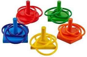 Content: 5 base boards, 5 rods and 15 rings.