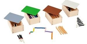Content: 4 wooden boxes containing variety of bead string.